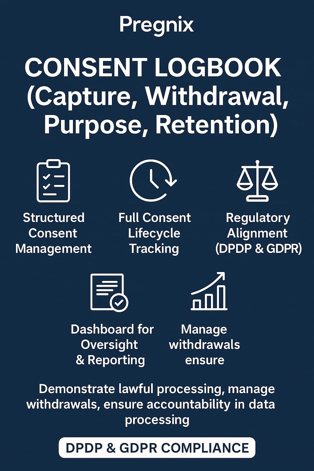 The Consent Logbook (Capture, Withdrawal, Purpose, Retention) is more than a record-keeping tool—it is a compliance safeguard and trust enabler that ensures your organization remains aligned with regulatory mandates and global best practices.