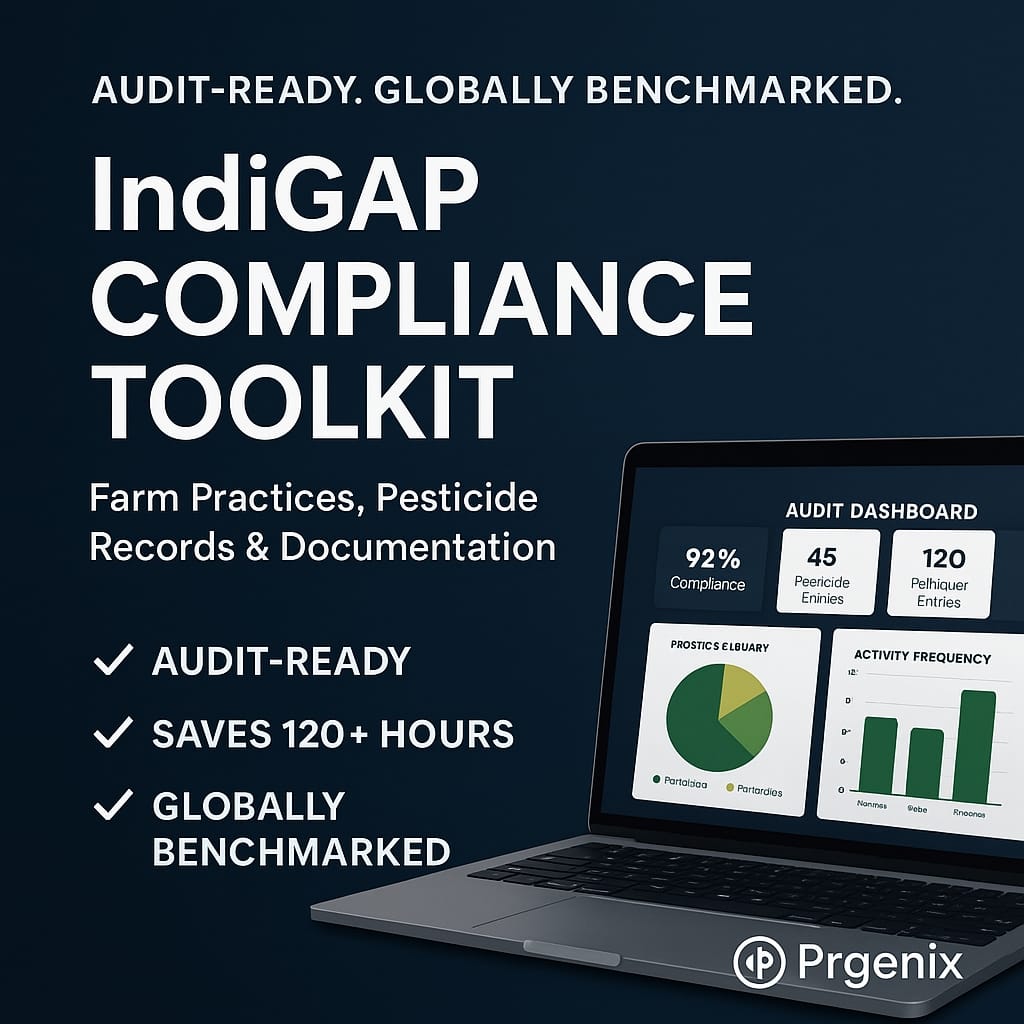 Achieving IndiGAP certification is not just about ticking boxes — it’s about demonstrating robust traceability, safety, and compliance practices that buyers and certification bodies trust. The Prgenix’s “IndiGAP Compliance Toolkit” provides a ready-to-use, professionally structured solution that makes farms audit-ready in days, not months.